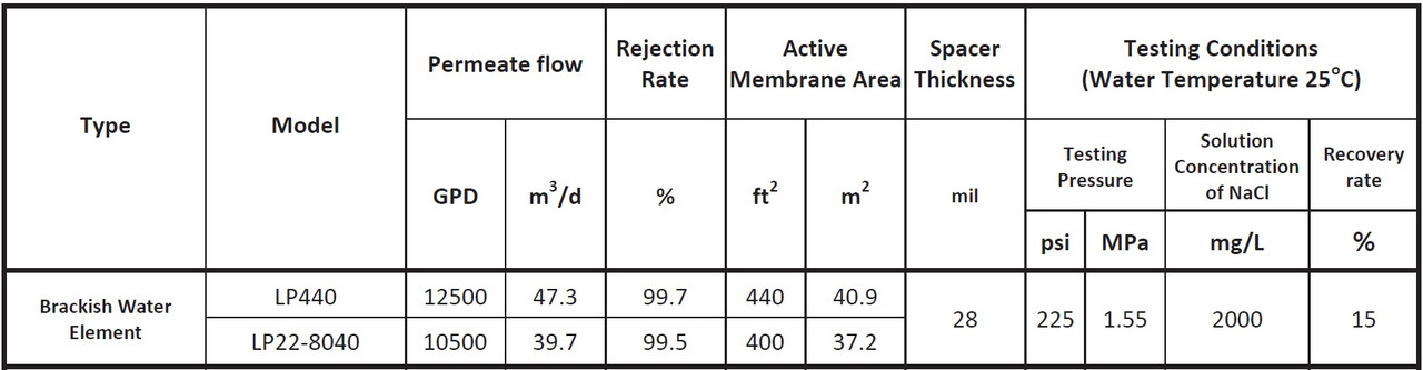 Серия LP - (Низкого Давления) - способна работать под низком давлением. Может применяется, для опреснения поверхностных вод, подземных вод, водопроводной воды, муниципальной воды.